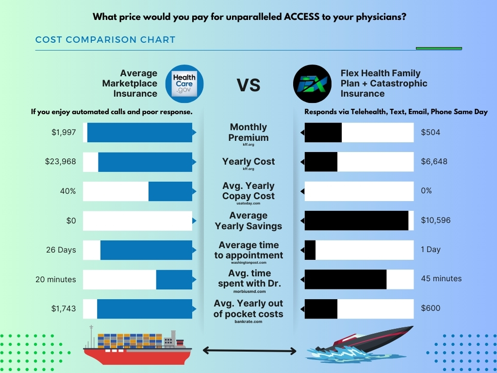 Total Annual Cost: When combined, the total cost for concierge medicine with catastrophic insurance often falls below what many people pay for traditional health insurance. Moreover, the value you receive in terms of personalized care, immediate access, and comprehensive routine services is significantly higher.
